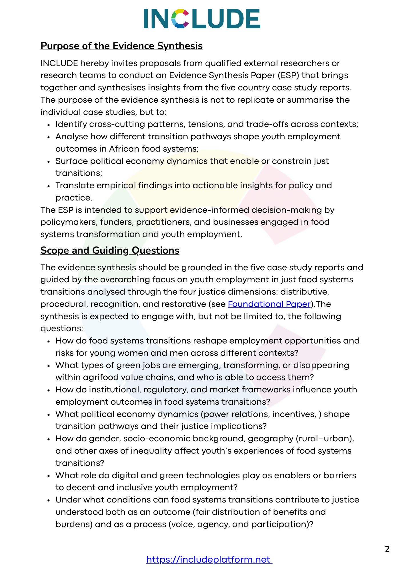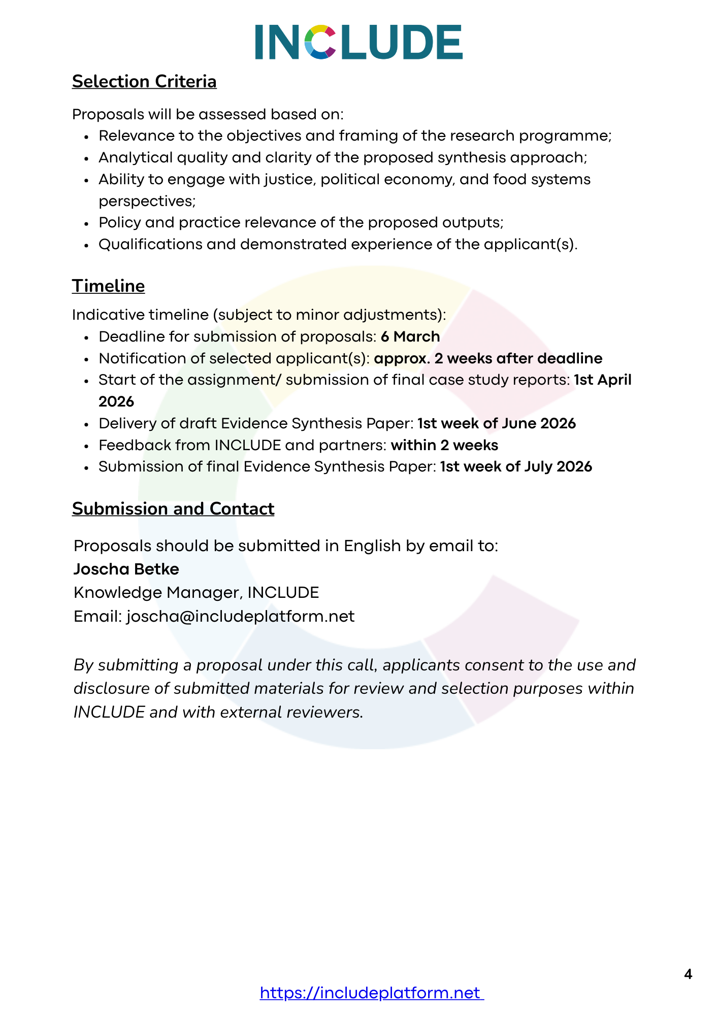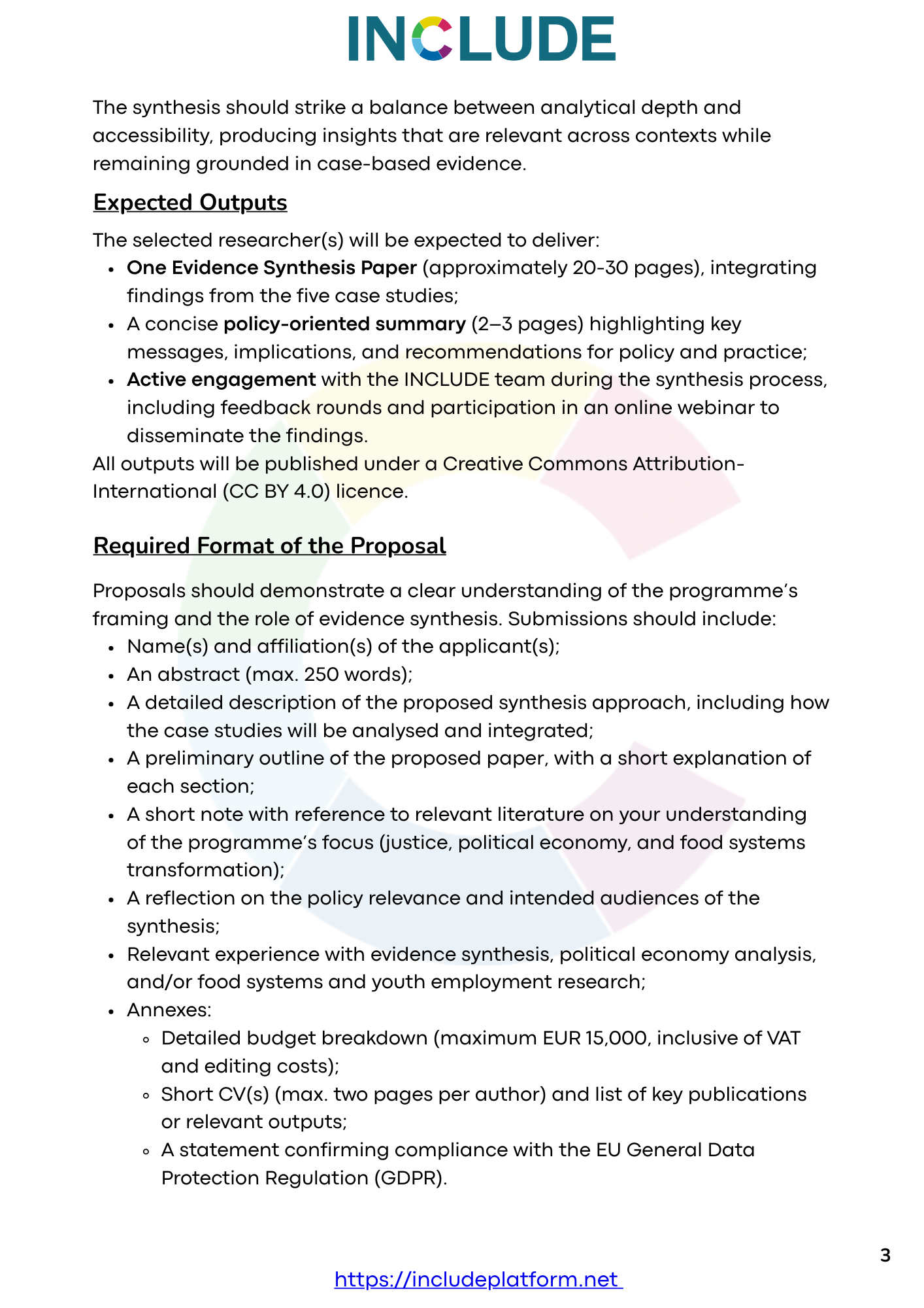 The selected researcher(s) will produce a full Evidence Synthesis Paper, a concise policy-oriented summary, and engage with INCLUDE in disseminating the findings. All outputs will be published open access.